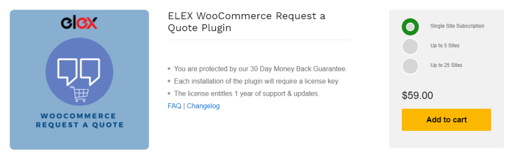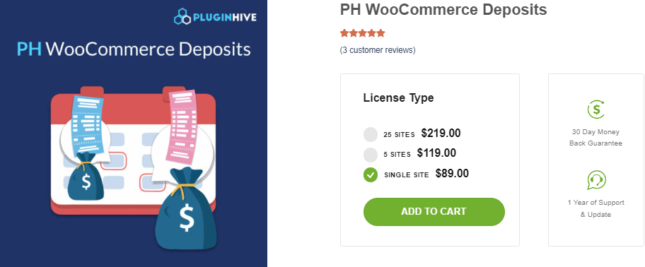 Premium WooCommerce plugin plan starts with $89 plan for single WordPress site.