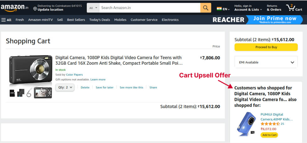 Amazon, the most popular online store, also uses upsell in cart pages to show related products.