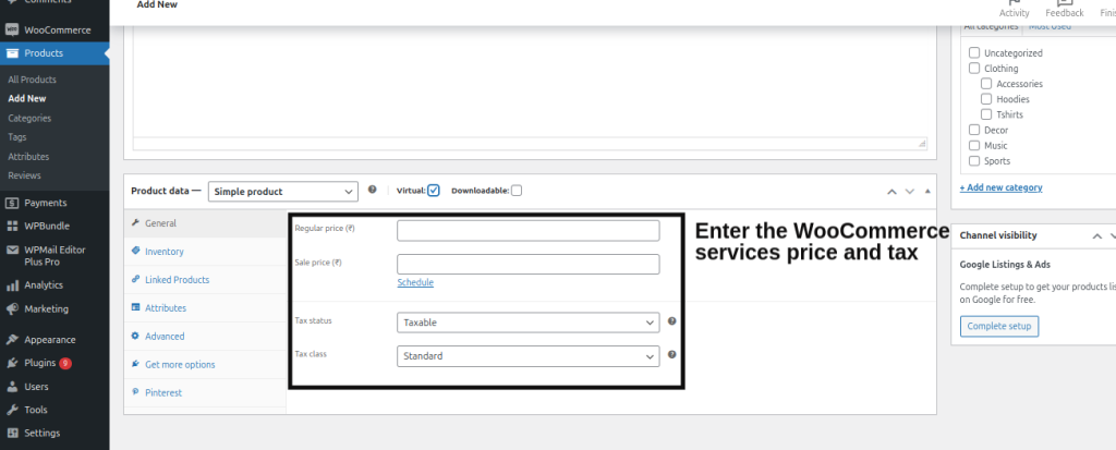 Services in your WooCommerce store can be added as a product. Products can either be created as a WooCommerce Simple Product or as a WooCommerce Variable Product depending on its type. The following are the steps to do it.